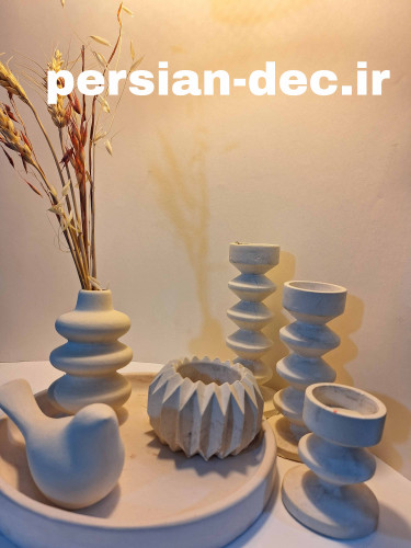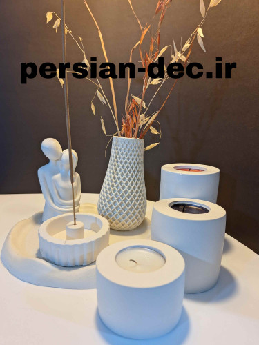ست تزئینی و دکوری سنگ مصنوعی زوج 1 شامل سینی گرد ، گلدان زنبوری ، جاعودی گرد ، ست جاشمعی استوانه و گلدان زوج۴۰۰٬۰۰۰ 12%