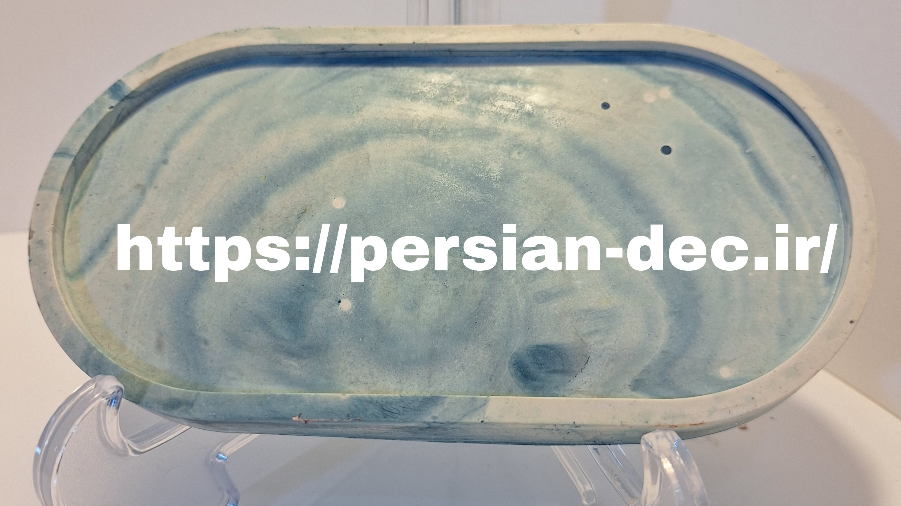 این سینی بیضی کوچک زیبا ساخته شده با پودر هنری سنگ مصنوعی و مقاوم سازی در مقابل ضربه با الیاف ، ضد آب و قبل شتشو می باشد