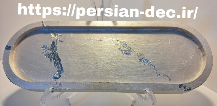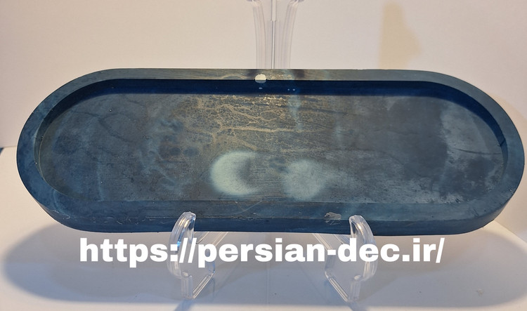 این سینی بیضی بزرگ زیبا ساخته شده با پودر هنری سنگ مصنوعی و مقاوم سازی در مقابل ضربه با الیاف ، ضد آب و قبل شتشو می باشد