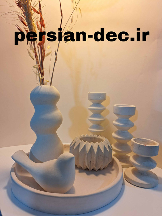 ست دکوری و تزئینی زیبا و جذاب سنگ مصنوعی آمین 2 شامل سینی گرد ، مراغ آمین ،گلدان آبشاری ،ست جاشمعی فنری و گلدان سفینه ای