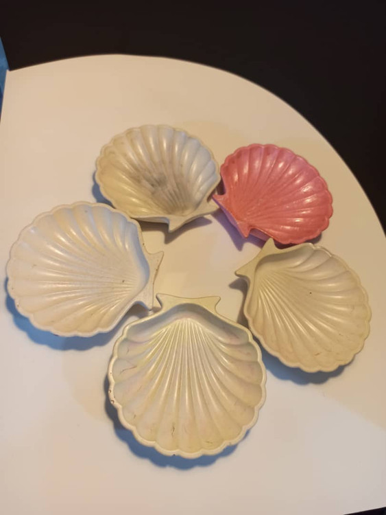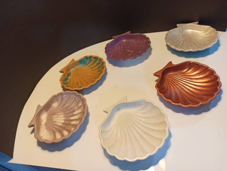 ظرفی صدفی سنگ مصنوعی در طرح و رنگهای متنوع مناسب برای جا شمعی ، جای جواهری و پذیرایی
